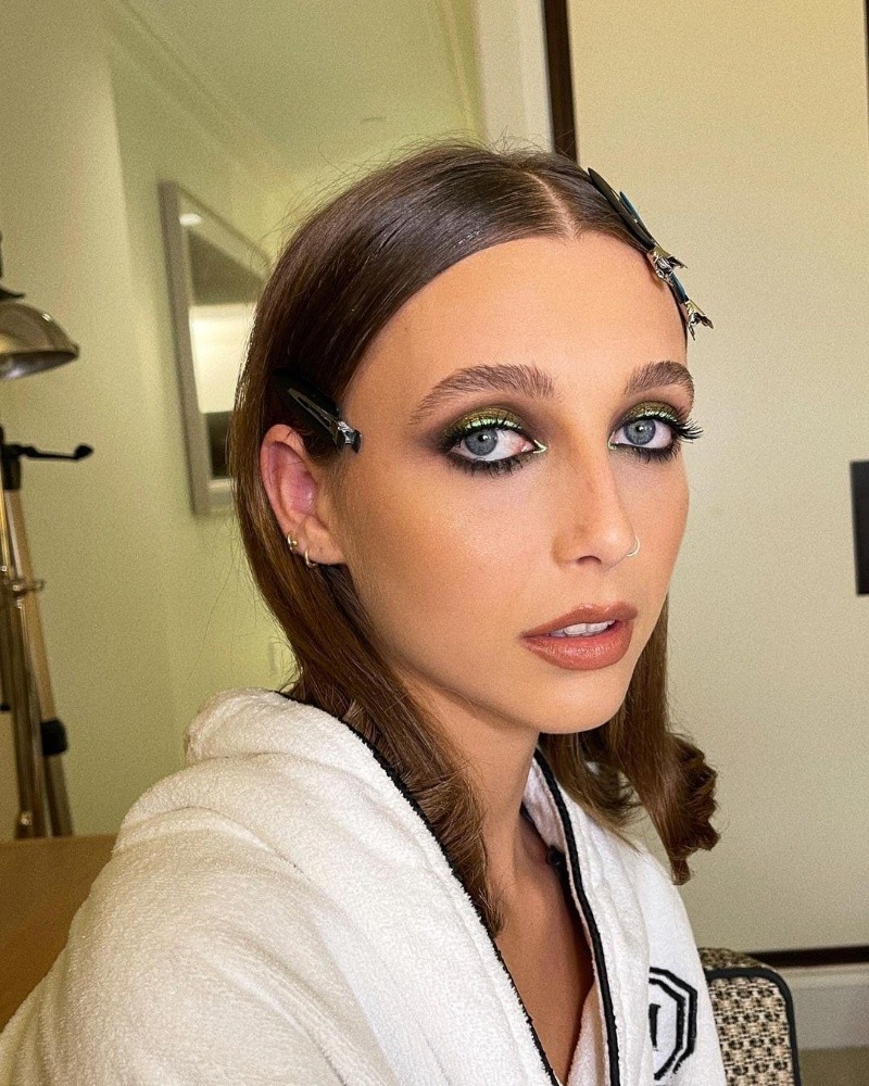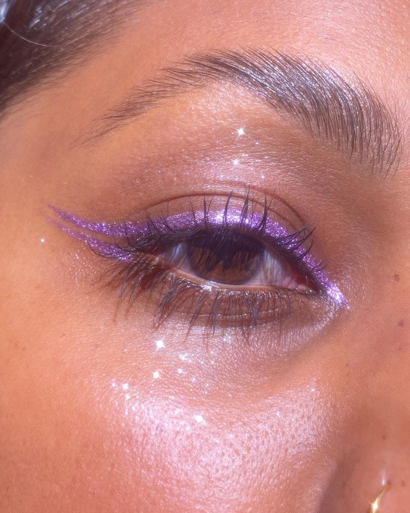 Uno de los denominados "efecto Euphoria" en alusión a la exitosa serie. Se trata de un efecto logrado con delineador líquido con acabado metálico, ideal para sumar líneas que continúen y extiendan el propio párpado.