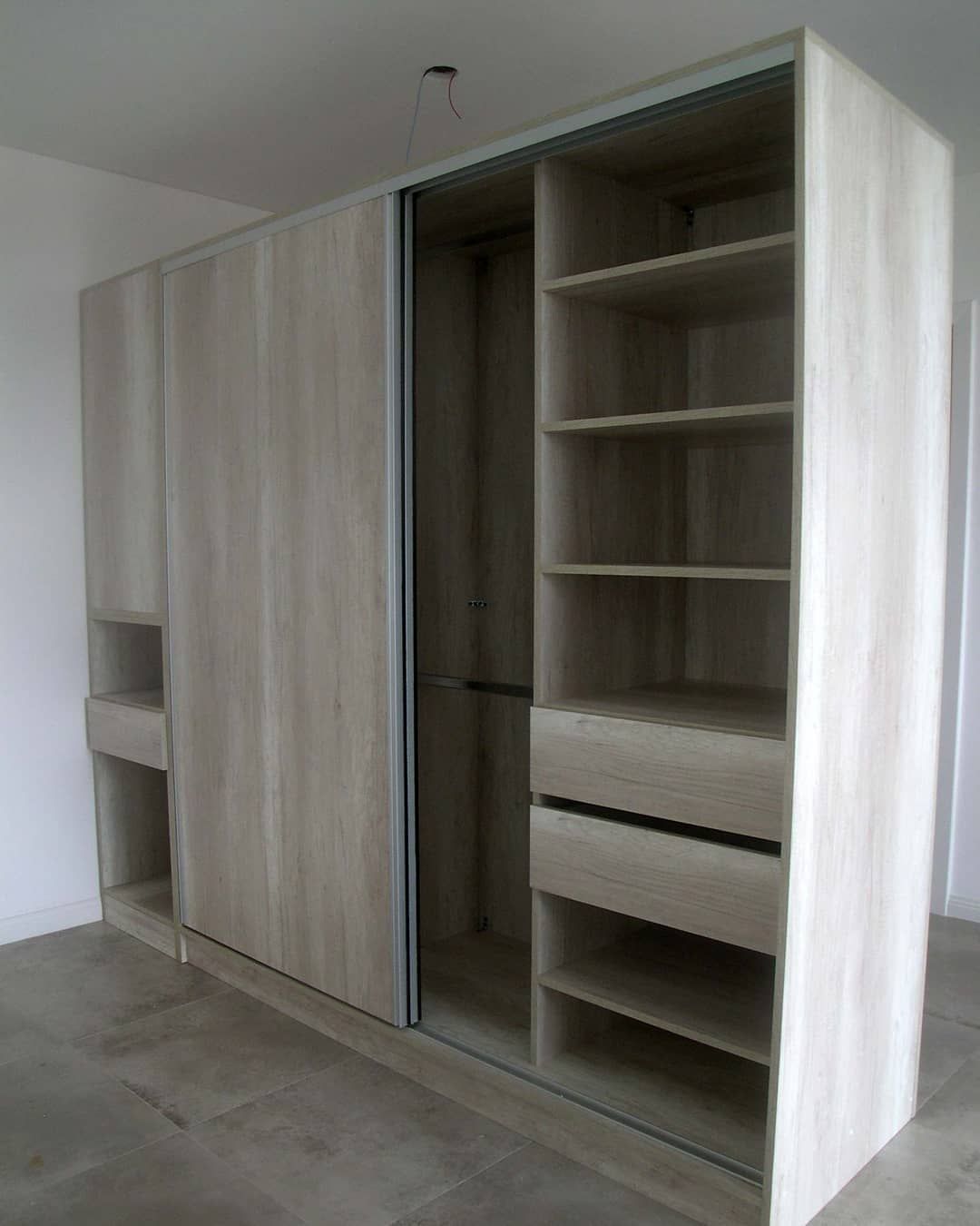- Placard o armario: Además de ser funcionales en caso de no contar con espacios de guardado, puede tener otros usos. Por ejemplo, del lado opuesto, el placard puede funcionar como respaldo de la cama, pudiendo pintarse de algún color en especial o empapelarlo.