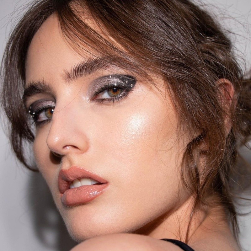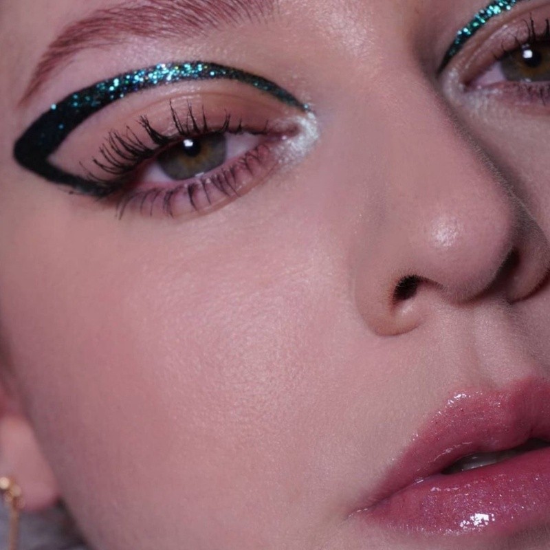 Se trata de uno de los complementos perfectos para una mirada que resalte en absoluto. Para lograr un delineado bien definido, es recomendable utilizar un delineador metálico común y, encima del mismo, aplicar el glitter con pequeños "toquecitos".