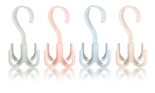 -Giratoria: Este tipo de percha sirve para colgar cinturones, corbatas, pañuelos, y cualquier otro elemento que pueda ser enrollado, además de carteras y bolsos. Una ventaja es que, si se colgar un outfit completo y listo para su uso, puede hacerse incluyendo los accesorios a utilizar y todo colgándose en este tipo de gancho.