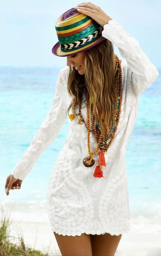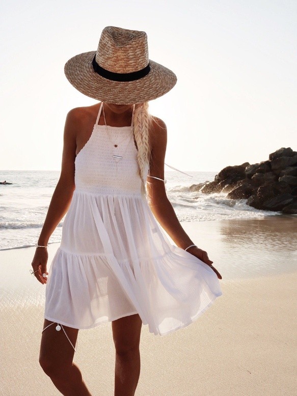 Algo que se ve muy trendy en un look de playa, es usar prendas blancas, de cualquier estilo, ya que para después de tomar sol se ven perfectas resaltando el bronceado. La idea de ir a la playa es pasarla bien y los outfits o accesorios tienen que ayudar.