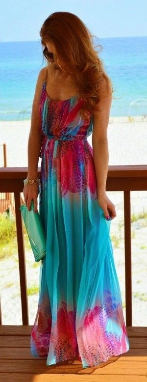 Los vestidos maxi muy largos, en telas livianas y frescas serán la tendencia para lograr un estilo más elegante y lujoso. Con estampados coloridos, esta ropa de playa aporta sofisticación y es perfecta para llevar tanto en un día normal como para fiestas más formales o de coctel en los arenales.