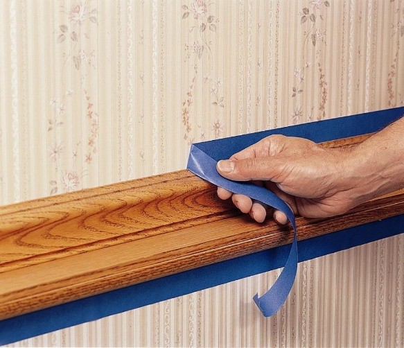 4: Cinta de enmascarar las molduras, ventanas y marcos de puertas. Para no manchar de pintura las puertas, los marcos de las ventanas, etc., lo mejor es cubrir los bordes con cinta, que tendrás que retirar una vez que se haya secado la pintura.