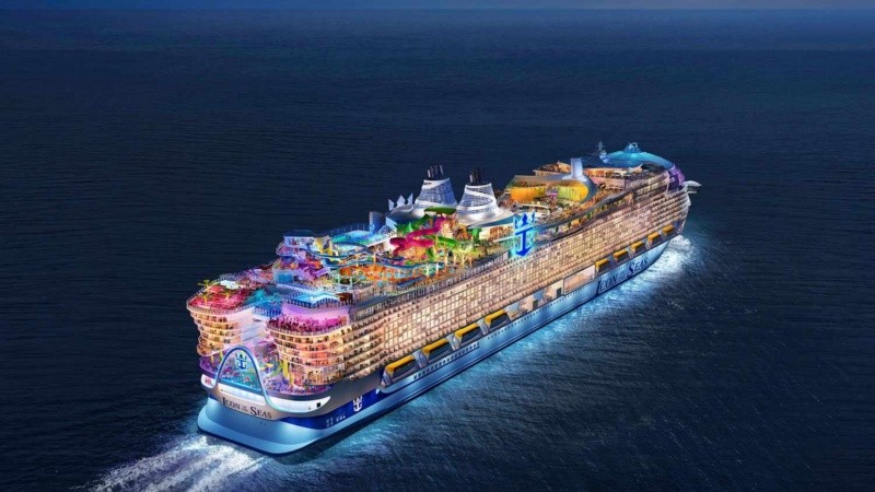 El nuevo crucero más grande del mundo saldrá a recorrer las aguas a partir de enero de 2024. Denominada "Icon of the seas", la embarcación de lujo pertenece a Royal Caribbean International y tendrá capacidad para hospedar a 8.600 personas entre pasajeros, tripulantes y artistas.