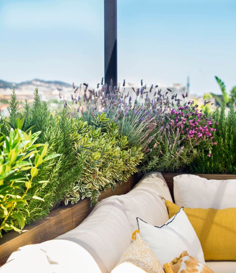 Puede crearse a partir del uso de palets o macetas pequeñas que cuelguen en una de las paredes. Brindará total atención y creará un ambiente armonioso por la presencia de la naturaleza.