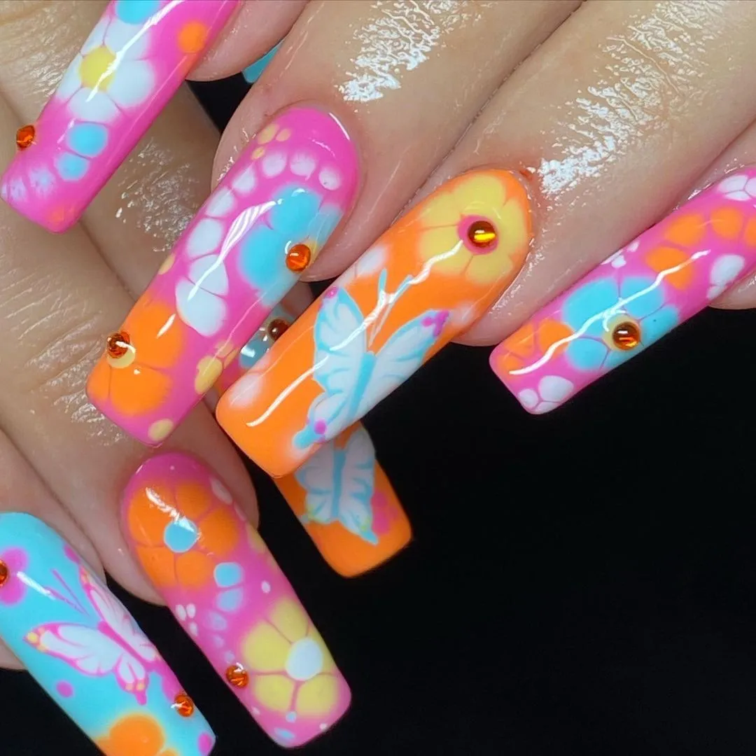 Resultados psicodélicos y fascinantes se aprecian a través de las manchas de distintos colores que se expanden como una lámpara de lava. Según la tonalidad elegida, los efectos son múltiples y se asemejan a texturas como la piel de serpiente, el caparazón de una tortuga, ondas de agua o incluso salpicaduras de pintura en aerosol. Por otra parte, pueden añadirse stickers o apliques de diamantes, mariposas y acabados cromados.