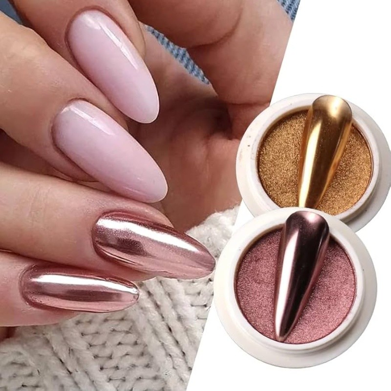 Con un estilo destaca por su cobertura metálica en lugar del tradicional toque perlado o glaseado, esta técnica combina una base de esmalte tipo naranja-melón llamada Cantaloopy con un polvo holográfico (en tono Aurora, ligeramente rosado) para lograr ese brillo reflectante.