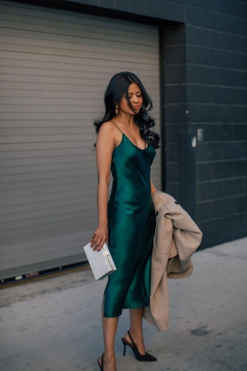 -El slip dress satinado: ligero, elegante y con un aire noventoso que vuelve a ser protagonista. Sus tonos en plateado, champagne o verde esmeralda se convierten en aliados ideales para noches primaverales donde menos es más.