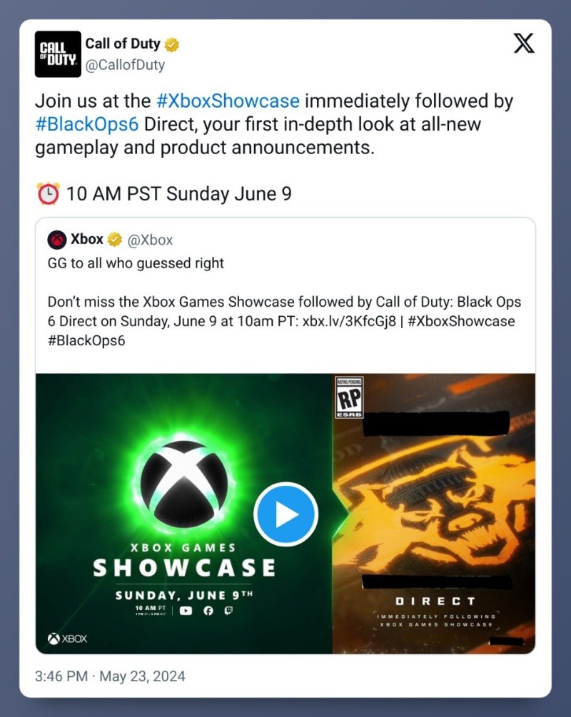 Finalmente se conoció que la próxima entrega de la franquicia bélica de Activision será "Call of Duty: Black Ops 6". Para confirmarlo, la compañía utilizó una imagen con el logo de un Cerbero, el mismo que utilizó Xbox al anunciar que haría un evento especial para presentar "la próxima entrega de una franquicia querida".