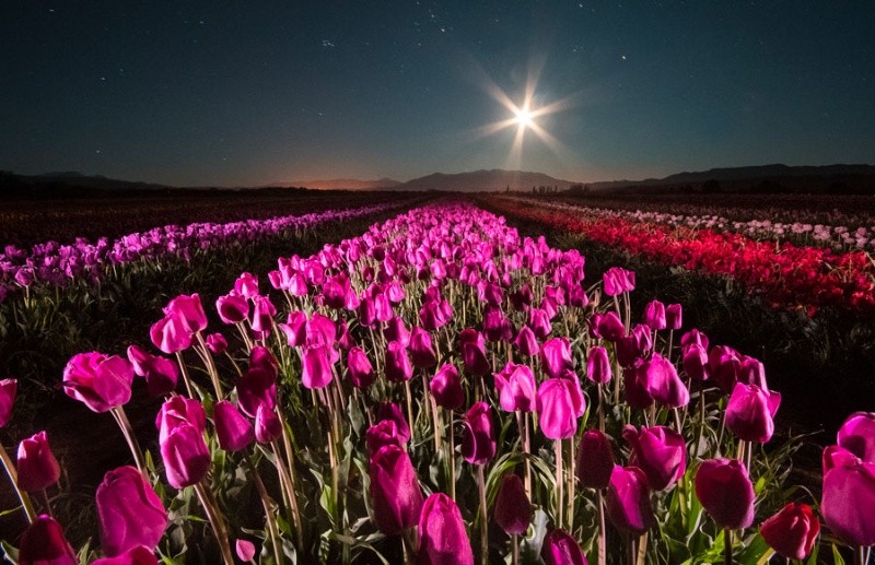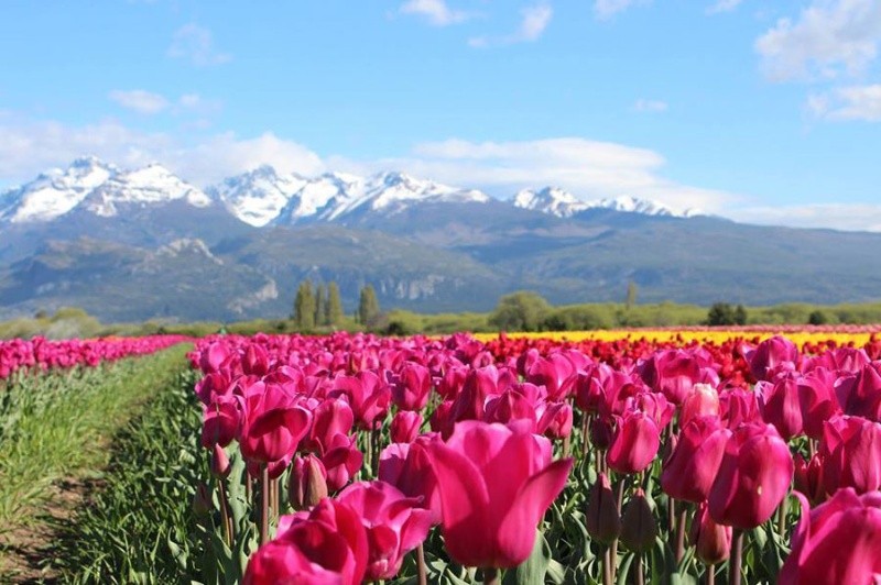 En Argentina, el Campo de Tulipanes de Trevelin, es como un pequeño Keukenhof patagónico, que atrae además por su impactante geografía alrededor.