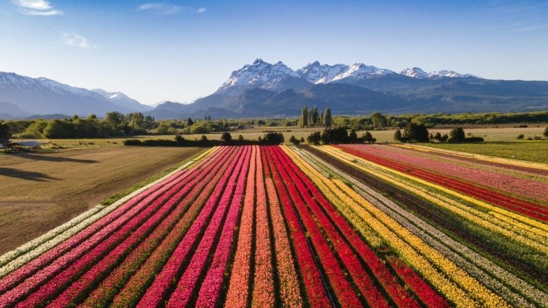 La Patagonia argentina regala otra atracción turística, esta vez, ligada a la época primaveral. Dejando atrás la nieve, comienzan a aparecer los colores y, en Trevelin (Chubut), se abre paso a la visita a un enorme campo de tulipanes.