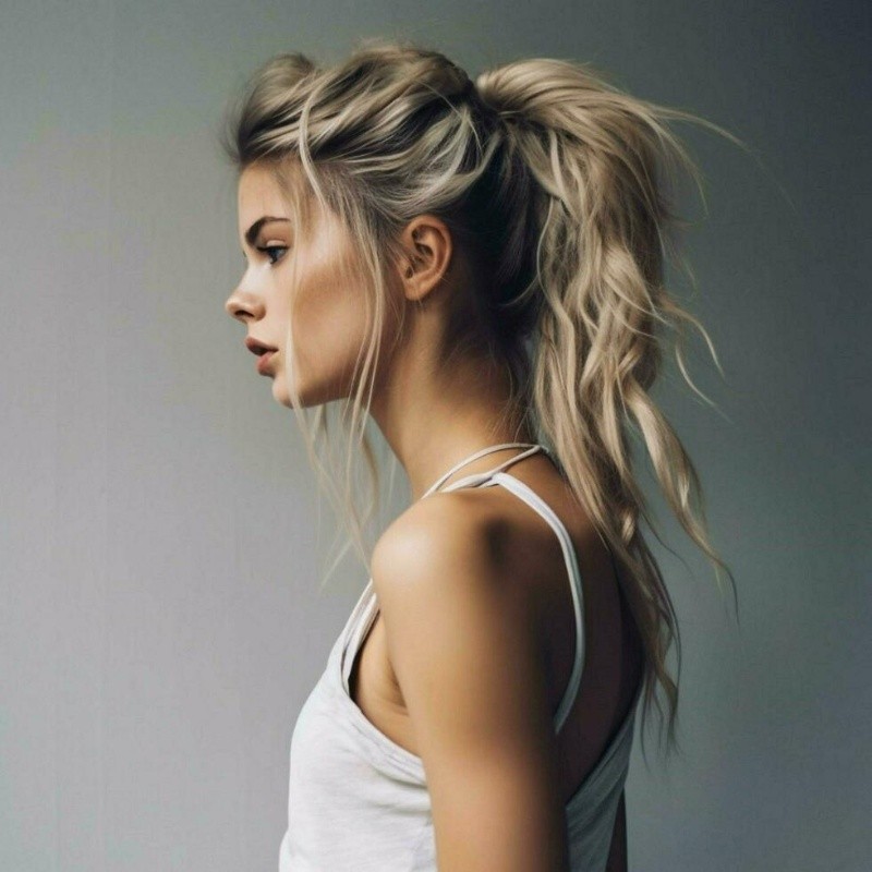 A diferencia del rodete bajo, la cola messy es una cola de caballo alta que se realiza casi en la coronilla o, para quienes así lo desean, entre la coronilla y la nuca. Además, no es necesario contar con una raya al medio, sino que el pelo levemente peinado hacia atrás será suficiente.