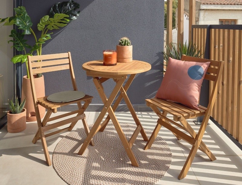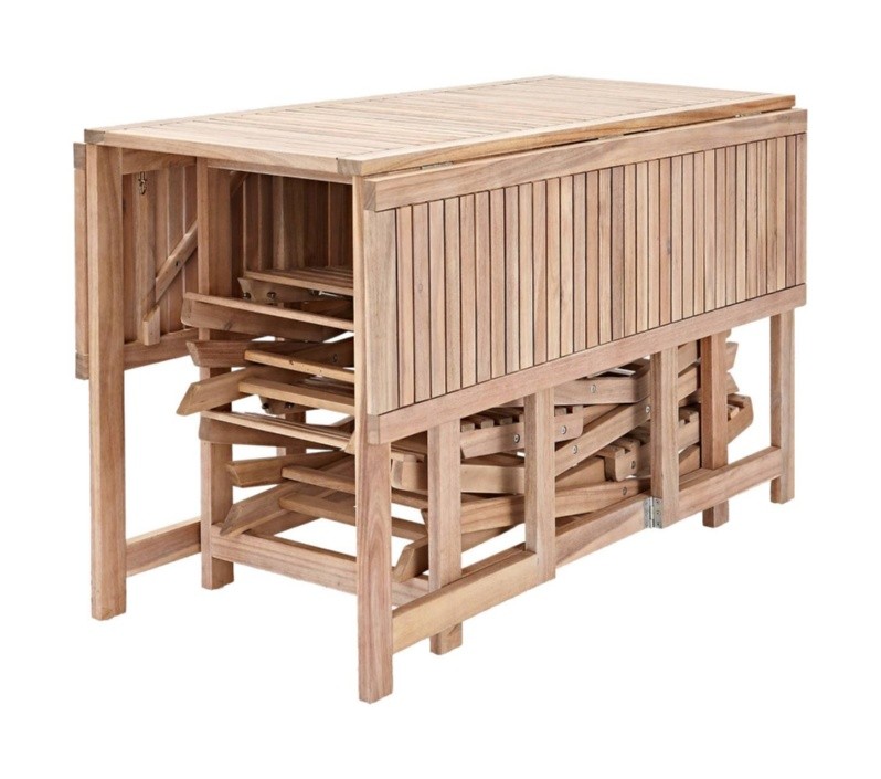 Además de las sillas plegables o apilables, las mesas que pueden reservarse ahorrando espacio al no ser usadas, son una excelente opción. Además de alternativas plásticas, también pueden conseguirse en madera, adaptándose así a la estética del espacio.