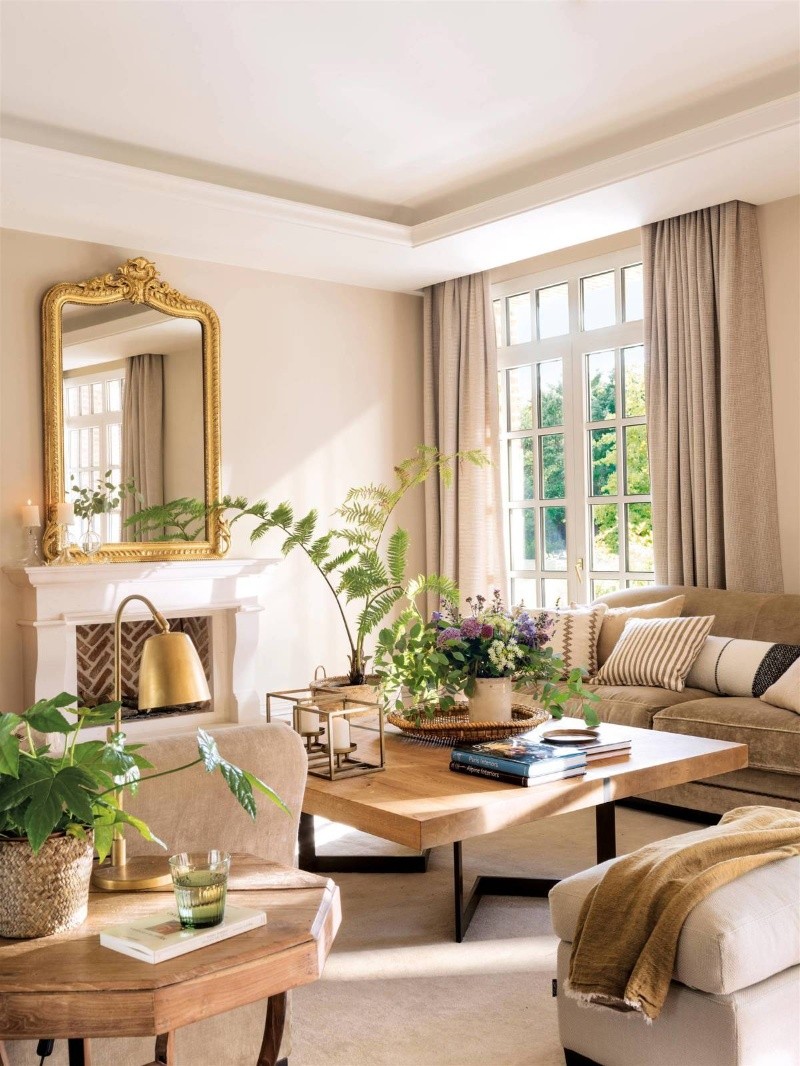 Los hogares o chimeneas con marcos ornamentales y espejos con detalles barrocos son íconos del estilo clásico. Los muebles de diseño moderno serán los ideales para crear el contraste que este nuevo estilo imprime.