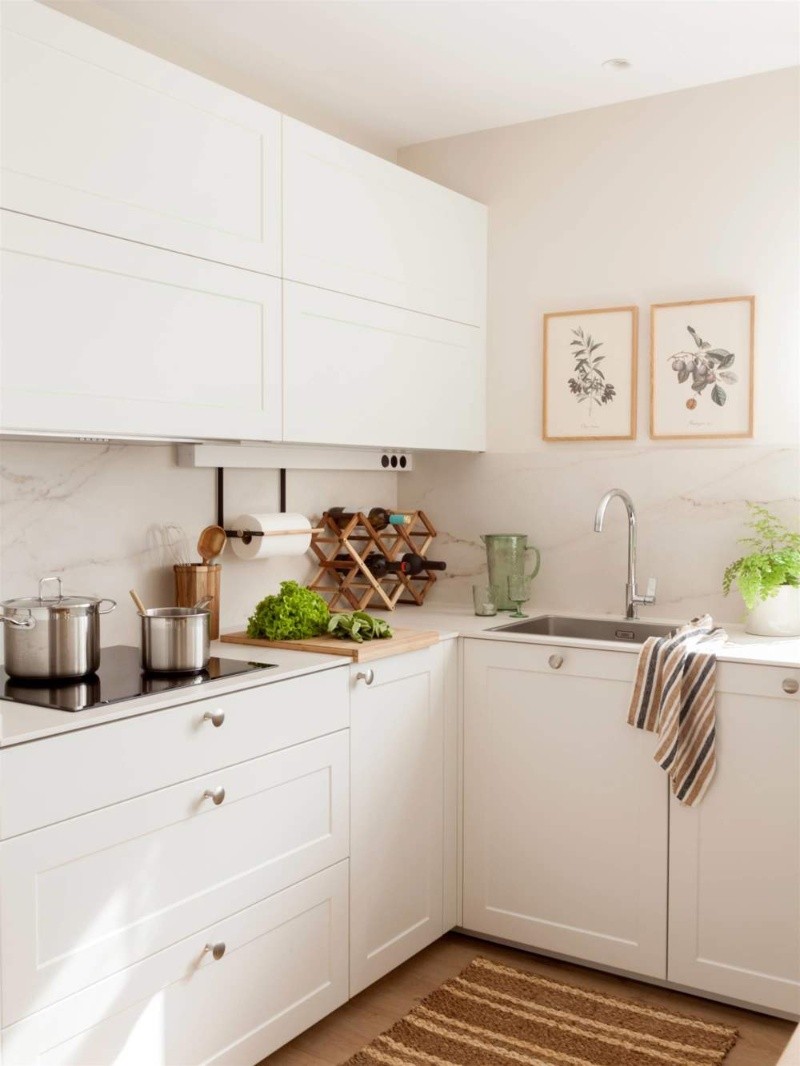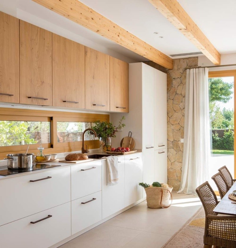 -Madera: La madera de por sí, al ser un elemento natural, ya logra generar calidez. Una de las recomendaciones es que, a los muebles blancos, también se les añada un detalle en madera como tiradores rústicos. Otra opción es añadir módulos, por ejemplo de roble natural.