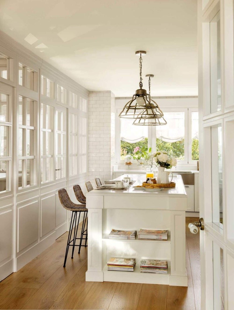Las cocinas blancas siempre son una buena opción ya que aportan sensación de amplitud, además de la luminosidad necesaria para este ambiente del hogar. Sin embargo, suele quedar muy sobria y fría si no se genera calidez a través de otros agregados.