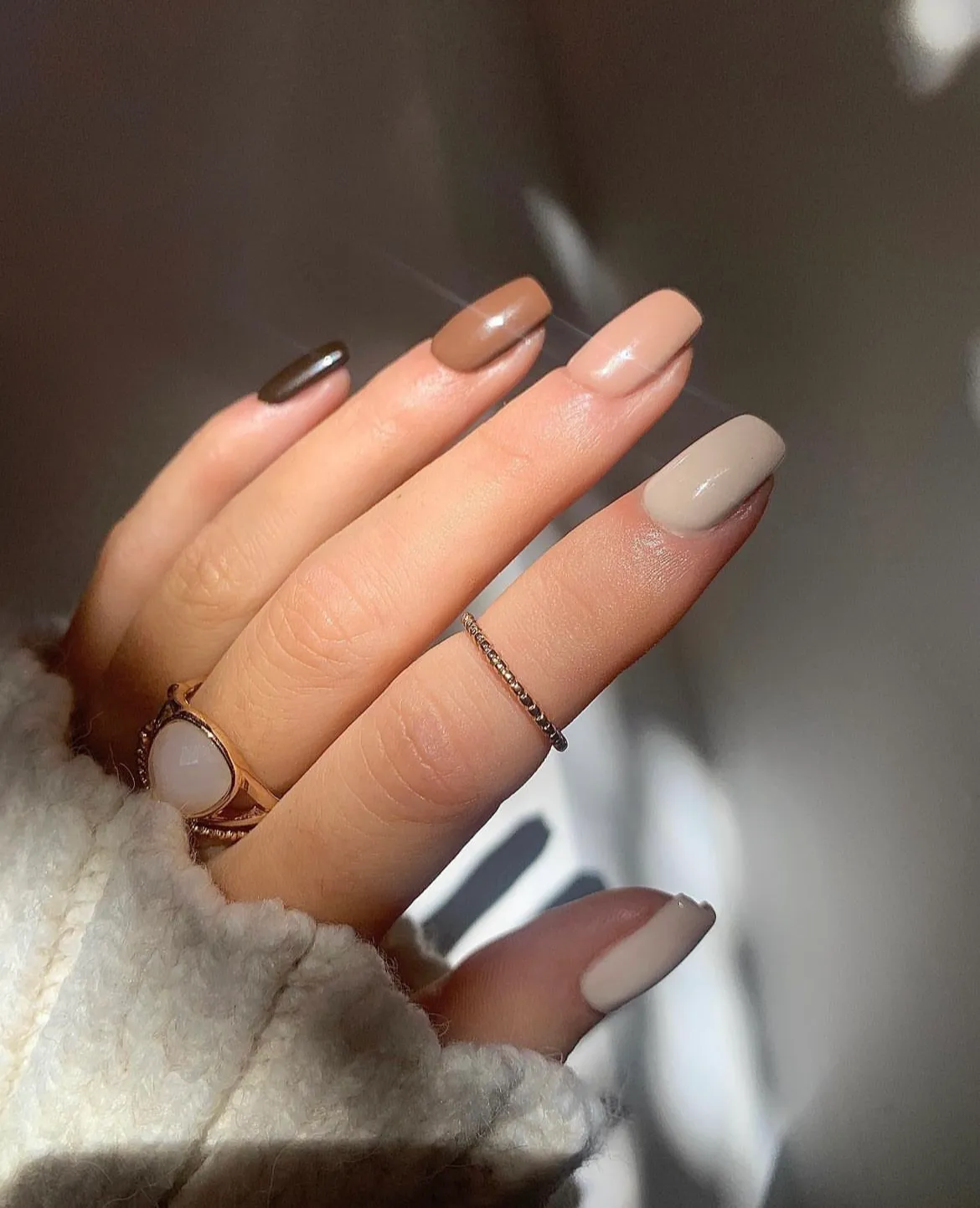 Lucir una uña de cada tono hasta llegar al café, es otra gran opción para volcar una serie de colores tendencia sin necesidad de tener que elegir solo uno.
