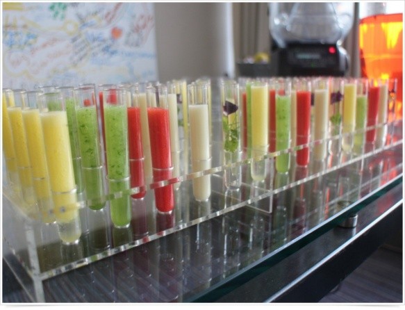 No se pueden ofrecer bebidas innovadoras en una barra aburrida. Agregá elementos de diseño, como indicaciones del mercado en una pizarra y frutas y verduras frescas para mejorar el nivel de las estaciones de las bebidas. Así, no solo vas a presentarla de una forma exquisita, sino que ofrecerás un espacio ideal para sacar fotos.