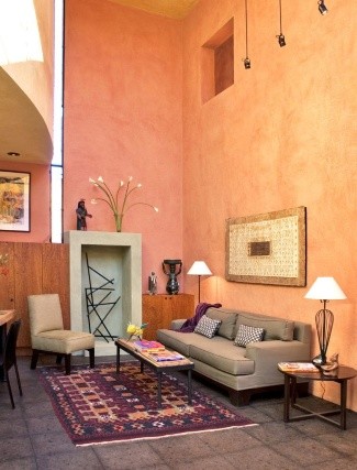- Naranja en paredes o suelo: En este sentido, la única regla necesaria e imprescidible es combinar el naranja con colores claros, como blanco o pasteles, y de esta manera no recargar el espacio con demasiada intensidad para no generar un clima agobiante.