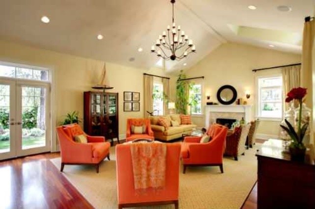 - Naranja intenso: Tonos osados, como los son el naranja puro o los tonos de mandarina, zanahoria o coral; son las opciones más elegidas. Sin embargo, para no agobiar el ambiente, se recomienda utilizarlos en algunas decoraciones, como puede ser un sillón, un sofá, almohadones, alfombras o cortinas.
