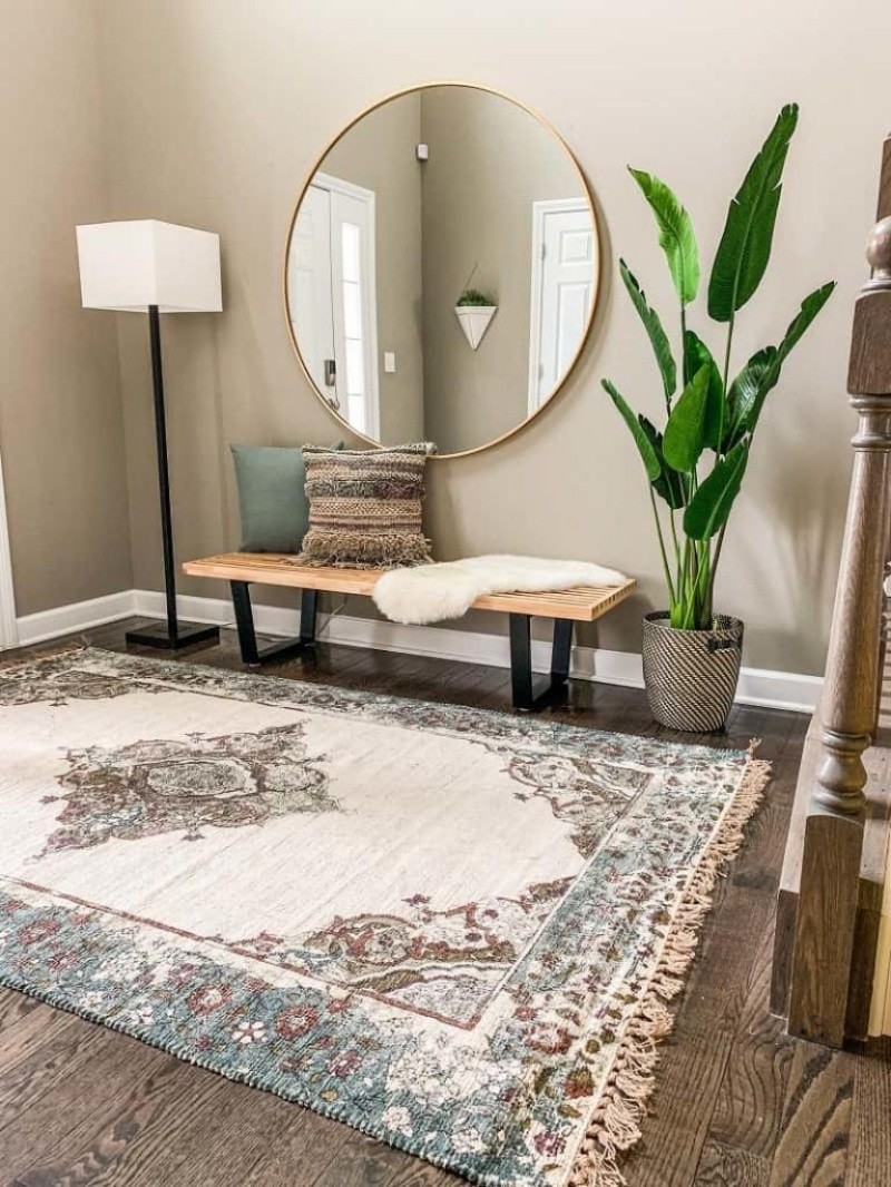 Para utilizar un espejo tan grande, el recibidor debe contar con un espacio prudente para ello -de lo contrario, se saturará el ambiente-. En tal sentido, debe ser aprovechado para que quien llegue pueda verse a sí mismo de forma completa. A modo de mini-vestidor o una especie de "chequear por última vez el outfit" como suele hacerse en un ascensor de un edificio, se puede complementar la presencia del espejo con un banquito o un perchero para ponerse cómodos e ingresar de esa forma al resto del hogar. Se recomiendan espejos de forma redonda, incluso con algún marco decorativo si así se desea.