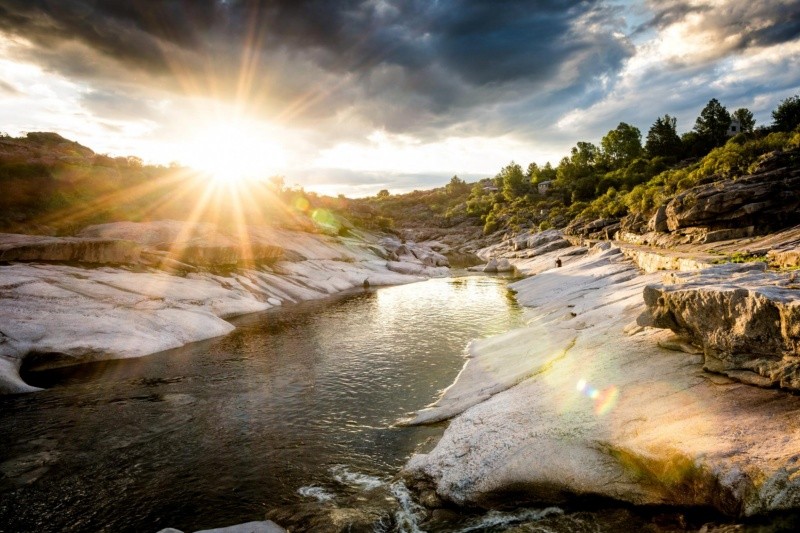 Ríos y arroyos se distinguen por la claridad de sus aguas, que desembocan en el Embalse La Viña. El mismo posee un muro de contención de 102 metros, el más alto de Latinoamérica. Distintos deportes náuticos se practican allí como kayak, windsurf, canotaje y remo.
