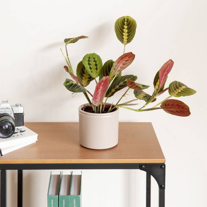 Cualquier tipo de Calathea podrá implementarse, aunque esta en particular cuenta con un detalle muy decorativo por su forma y colores. No necesita mucho riego y poca luz, cuidando no estar cerca de corrientes de aire y sí buena humedad.