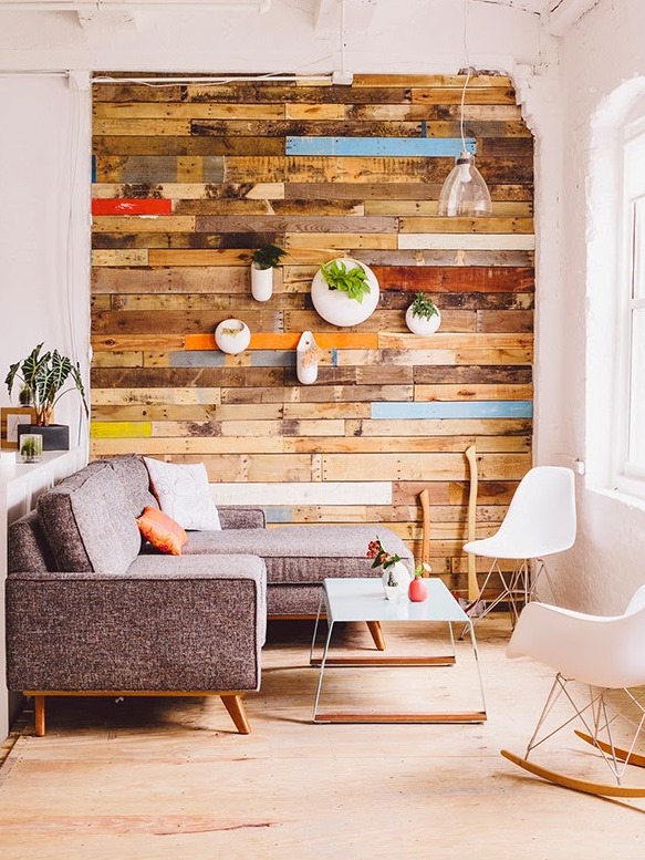 Si sos una persona amante del estilo rústico, esta opción es para vos: decorá tu pared con tablas de madera. Podés dejarlas al natural o pintarlas del color que más se adapte a tu living.