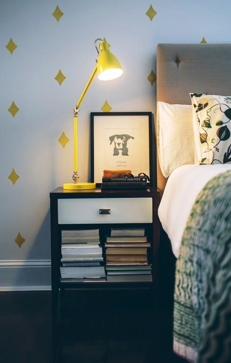 Otra de las ideas, para las paredes de tu dormitorio, son estos rombos amarillos.