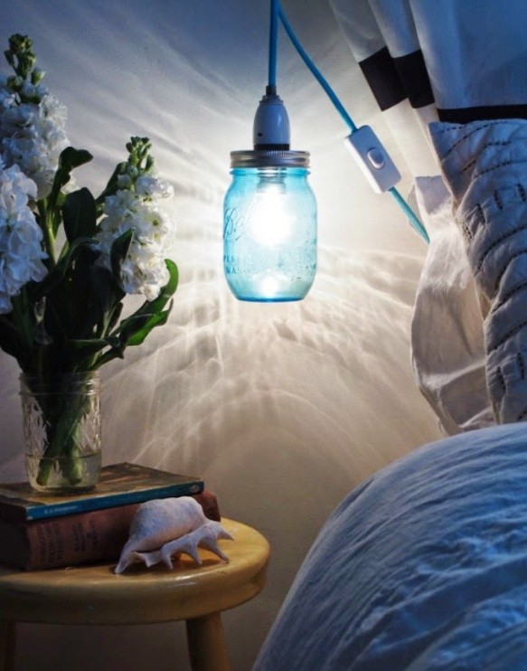 Otra de las opciones es realizarla con un frasco. En este ejemplo, se ha utilizado uno de color azul para dar una luz especial, pero podés elegir el tono que quieras.
