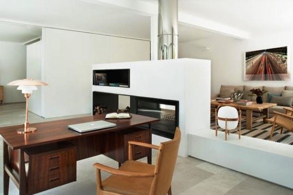En esta propuesta se destacan el orden y la funcionalidad: cuando el escritorio no se usa, se integra al mobiliario del resto del living.