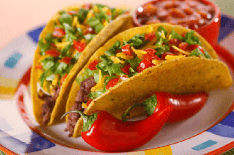 Ingredientes: 6 tortillas de trigo o maíz; 350 kg de carne picada (ternera o pollo); 4 dientes de ajo; 500 gr de tomates; cantidad necesaria de sal, pimienta y aceite; 1 cebolla pequeña picada; 1 jalapeño o chile; dos tomates medianos; hojas de cilantro; media lima. Opcional: queso rallado a gusto.