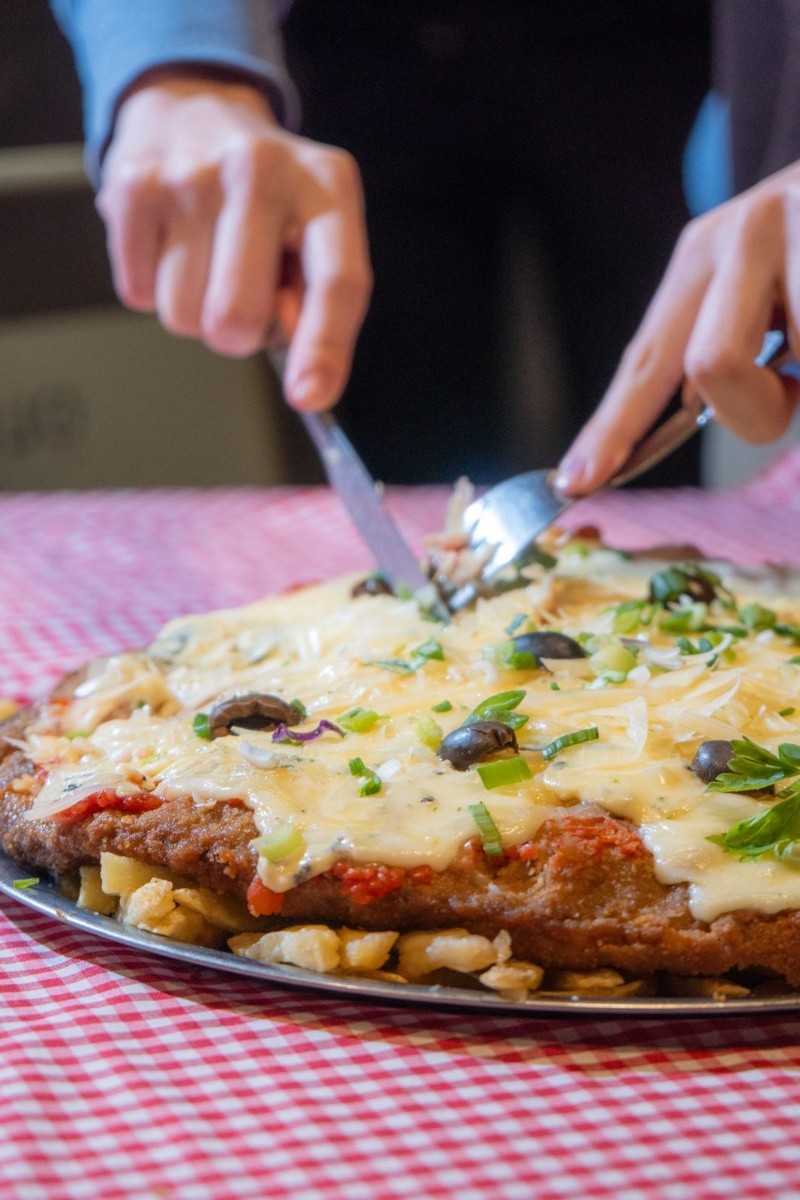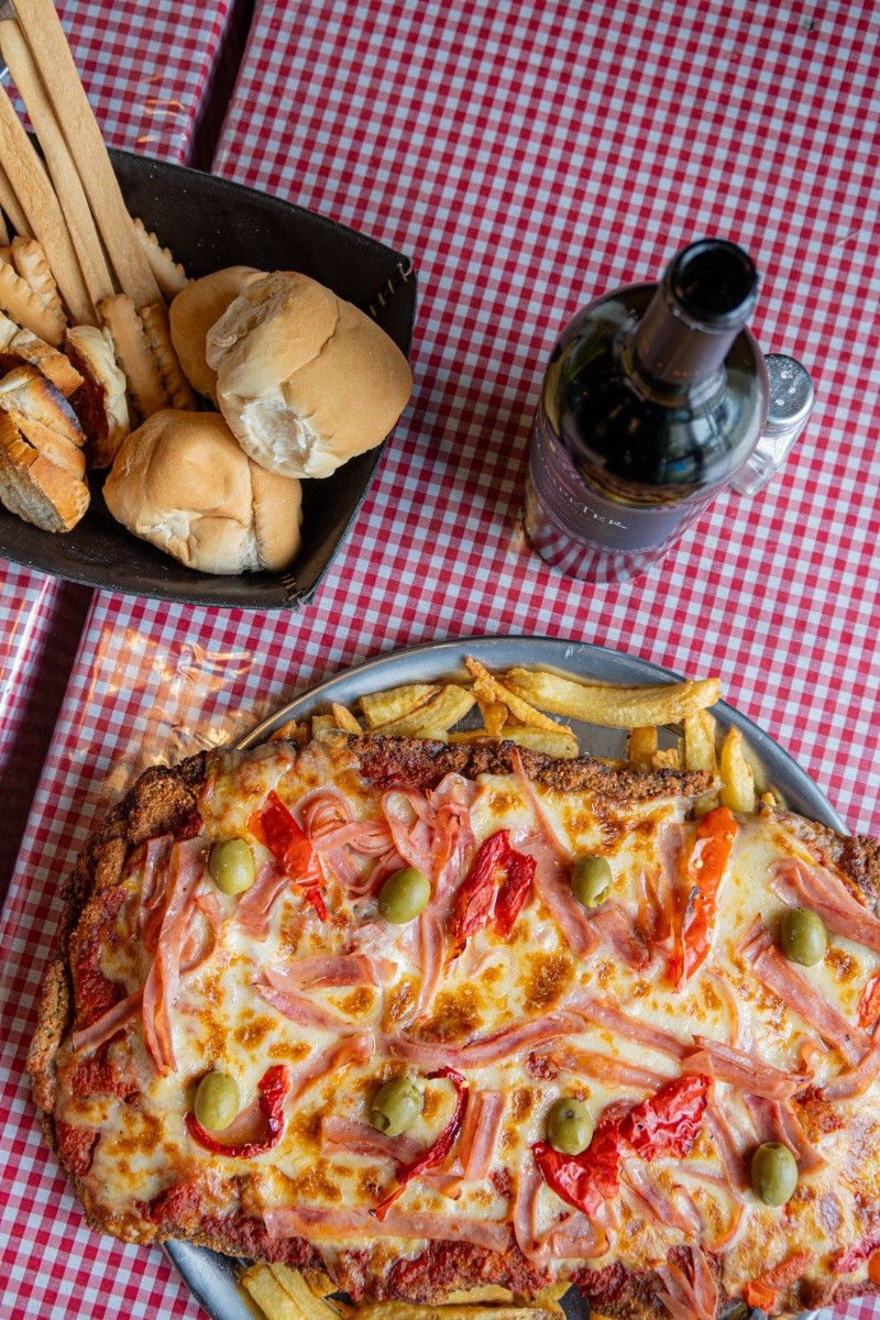 Uno de los hits indiscutidos es la Torre de milanesas, que llega a la mesa con tres variedades de pizzanesa: americana, cuatro quesos y mozzarella, además de acompañarse con papas con cheddar, panceta y verdeo. Según diversos influencers gastronómicos, el plato alcanza hasta para cuatro comensales.