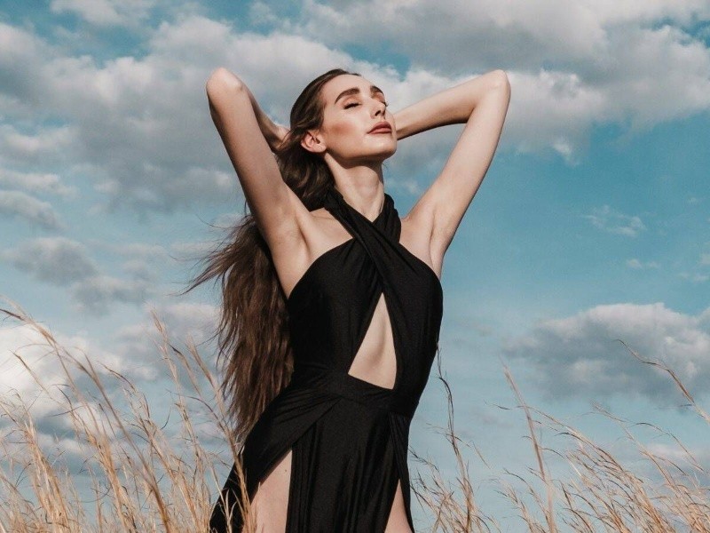 El diseño del vestido genera una mayor longitud visual desde el pecho hacia el cuello, lo que brinda aún más elegancia al lucir la prenda que se caracteriza además por contar con los hombros al descubierto.
