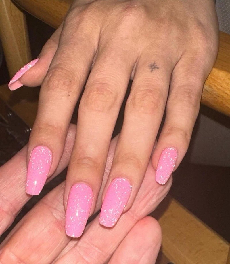 Sin uñas diferentes entre sí, todas lucen esa base dulce y delicada que luego fue bañada en destellos que destacan aún más el color y la intención. En esta ocasión, la propuesta fue con formas redondeadas aunque se trata de un color y efecto tan versátil que puede adaptarse a otros tamaños y siluetas.