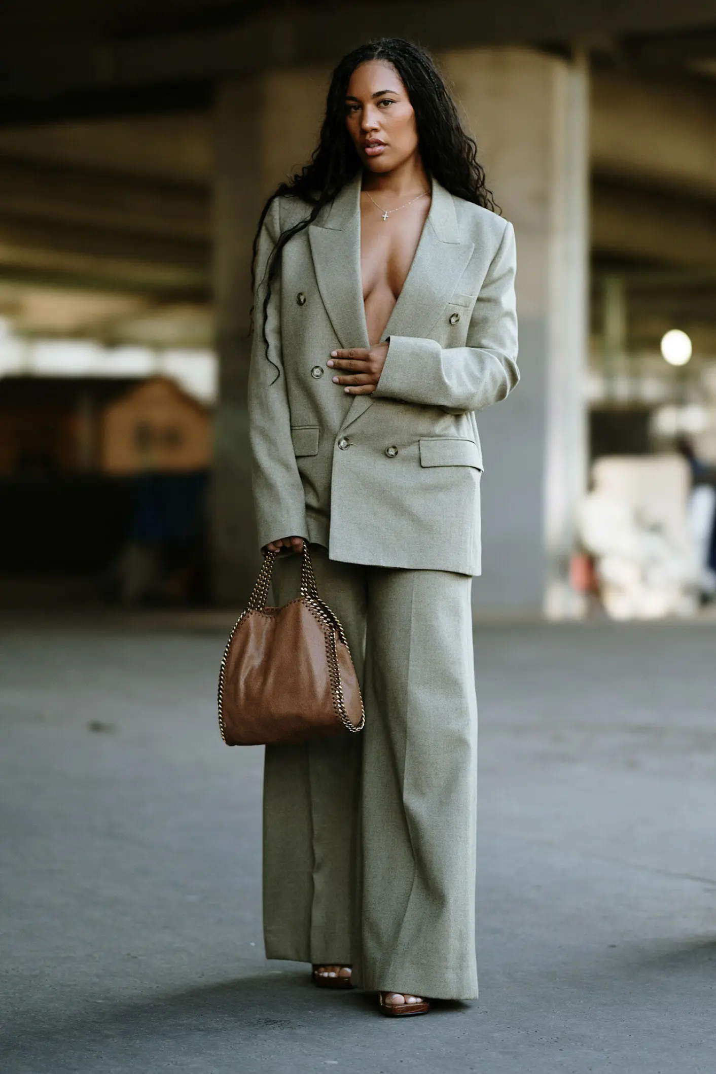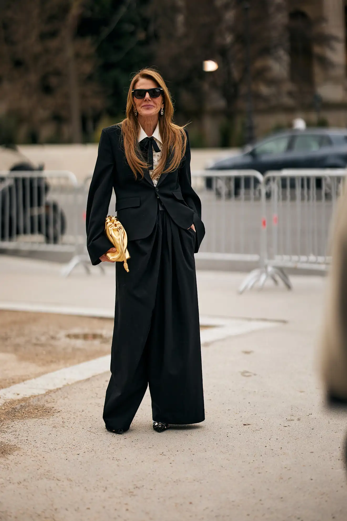 Hombreras pronunciadas y largos infinitos acompañan a los pantalones más holgados. No obstante, la sensualidad aparece por medio de los escotes profundos de los blazers. Además, para quienes optan por un look más sobrio, las camisas blancas hacen lo suyo, incluso con el uso de corbatas o moños.