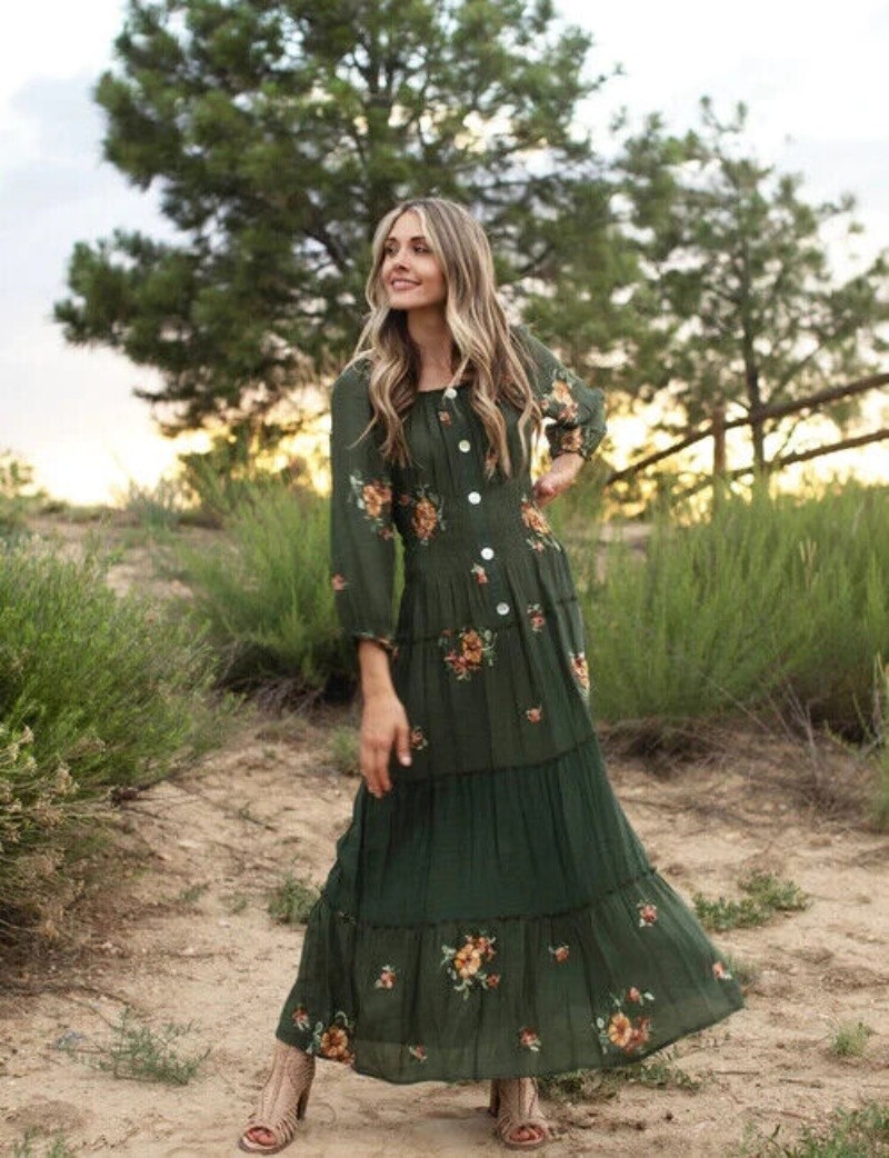 Sin embargo, no todo se reduce al sol y a los looks del street style diurnos. La moda boho también cuenta con sus opciones más elegantes para outfits nocturnos y formales y, en tales casos, hay un color que se volvió clave: el verde oliva.