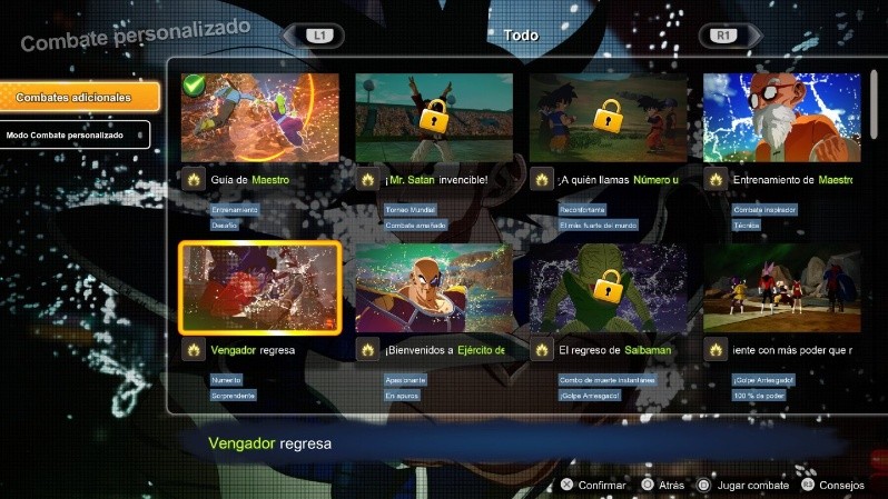 -Combate de episodio: Un regalo para fans del manganime que se puede jugar desde el punto de vista de varios personajes, arcos icónicos de Dragon Ball. Según los expertos, son recreaciones tan fieles como impresionantes, a la vez que se podrá desviar un poco de la trama y crear versiones alternativas.