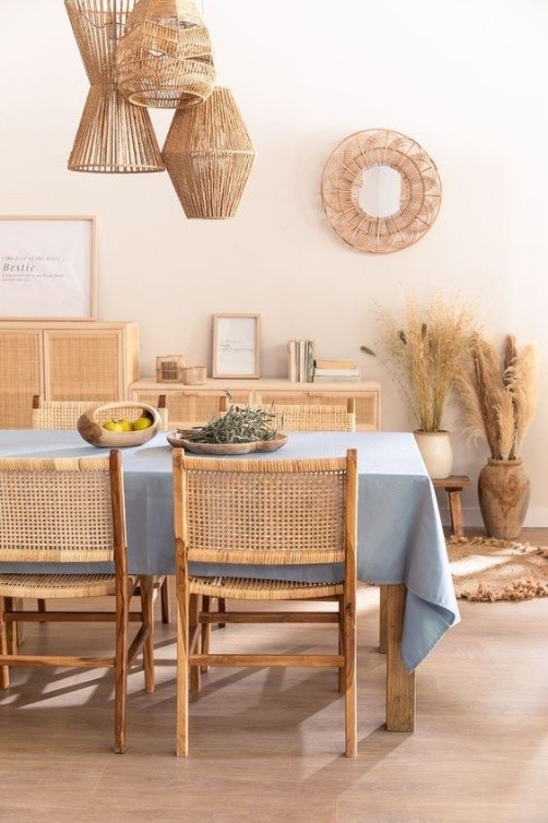 Yute, ratán, mimbre, madera, son algunos ejemplos para comenzar a aplicar, o continuar fomentando en caso de ya tener algunos elementos. Pueden buscarse objetos completamente hechos a base de fibras naturales, o bien, contar con detalles en los mismos.