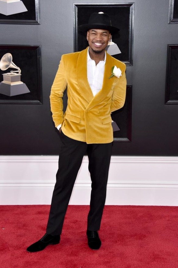 Ne-Yo ha sido de los pocos hombres que ha arriesgado con su chaqueta del esmoquin, en su caso, de terciopelo en color mostaza, dos tendencias de la temporada.
