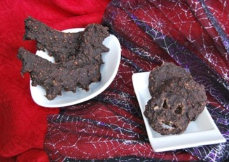 Colocar la pasta sobre papel vegetal en una bandeja para horno, si se desea realizando algunas formas tenebrosas. Hornear a 180° C durante 15 min, con el horno previamente calentado. ¡A disfrutar!