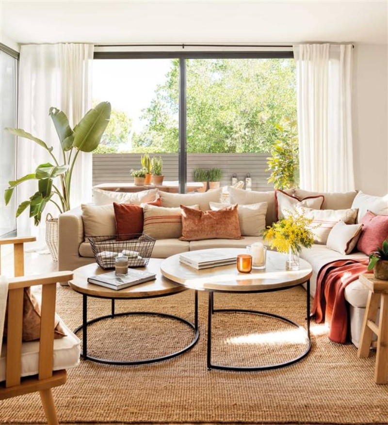 Esto se debe a que las formas redondas y sin puntas son más orgánicas a la vista, y a su vez permiten que el paso por allí no se vea tan obstaculizado. Existen además las llamadas "mesas nido", donde dos o tres piezas al estilo mamushka se desglosan para crear una mesa más amplia, pero luego se pueden volver a meter dentro de la más grande para ahorrar espacio.