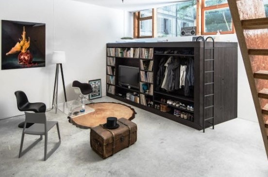 1. Una de las alternativas es la de replegar los enseres mientras no se estén usando, como por ejemplo, la cama. De este modo, durante el resto del día, podés aprovechar ese espacio.