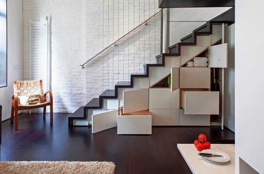 5. Las escaleras siempre son un elemento fundamental, a la hora de aprovechar los ambientes, ya que pueden funcionar como estantes, cajones o también como guardarropas.