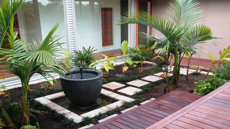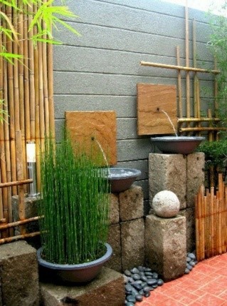 Para decorar el espacio del jardín, los materiales más elegidos son piedras, baldosas, maderas y, por supuesto, macetas con diseños especiales. Además, pueden agregarse fuentes (que vienen en distintos tamaños), con el agua que corre y da una mayor sensación de frescura sumándose a las plantas. Lámparas y almohadones de distintos tamaños pueden sumarse a la propuesta.