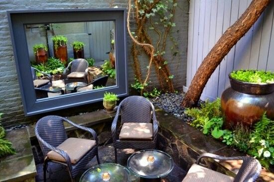 Este recurso es sumamente agradable a la vista porque, colocado detrás de las plantas, multiplica la visión de las mismas y da sensación de profundidad. Así, parecerá la puerta o ventana abierta hacia otro jardín.