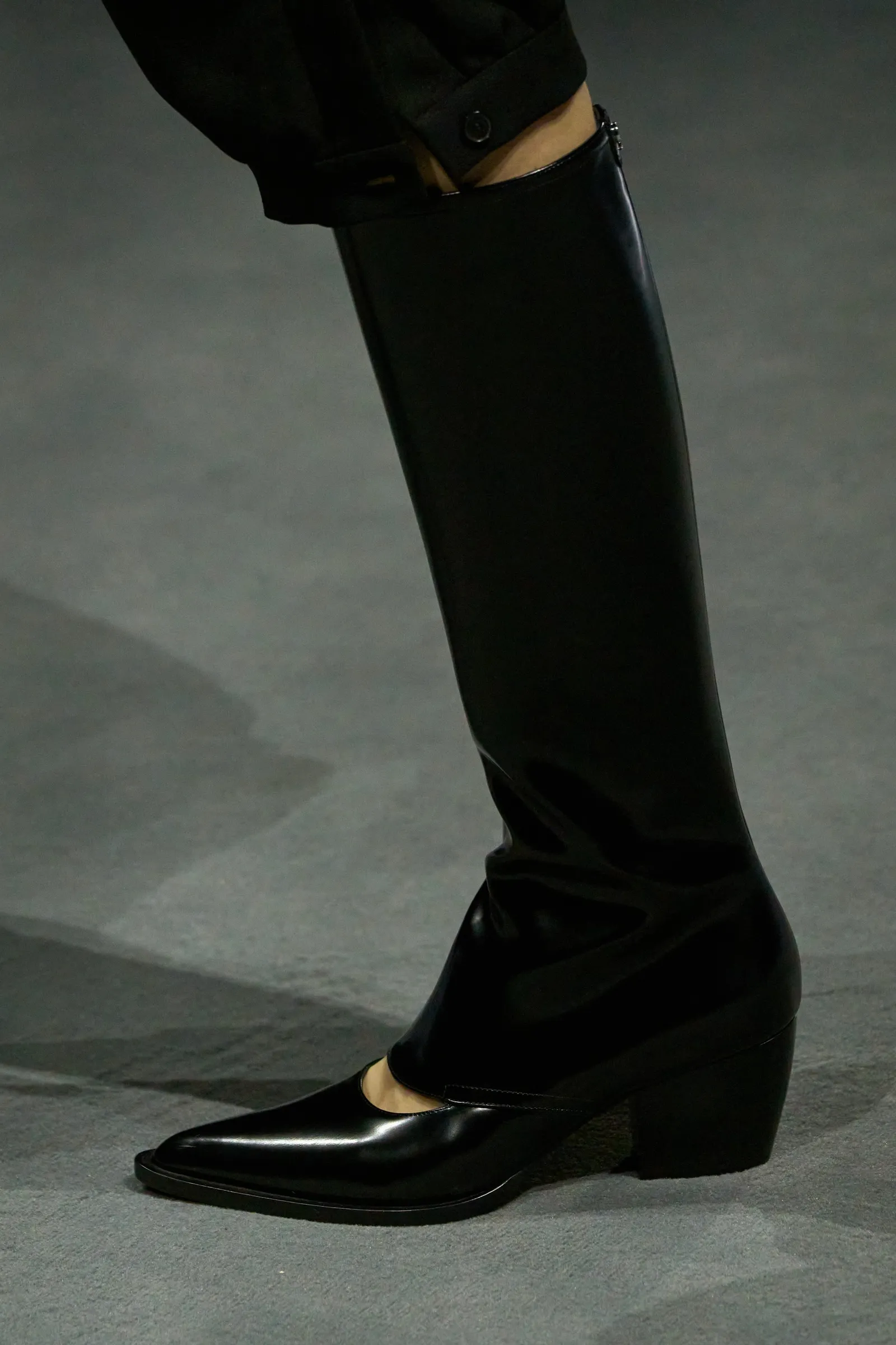 Hasta el momento, las siluetas que pudieron verse en este tipo de botas son, por un lado, un modelo de caña alta con taco kitten, punta triangular y abertura frontal; y, por el otro, un modelo de caña alta aunque con taco ancho. Además, pueden encontrarse en variados colores y texturas aunque el color negro es el predominante.