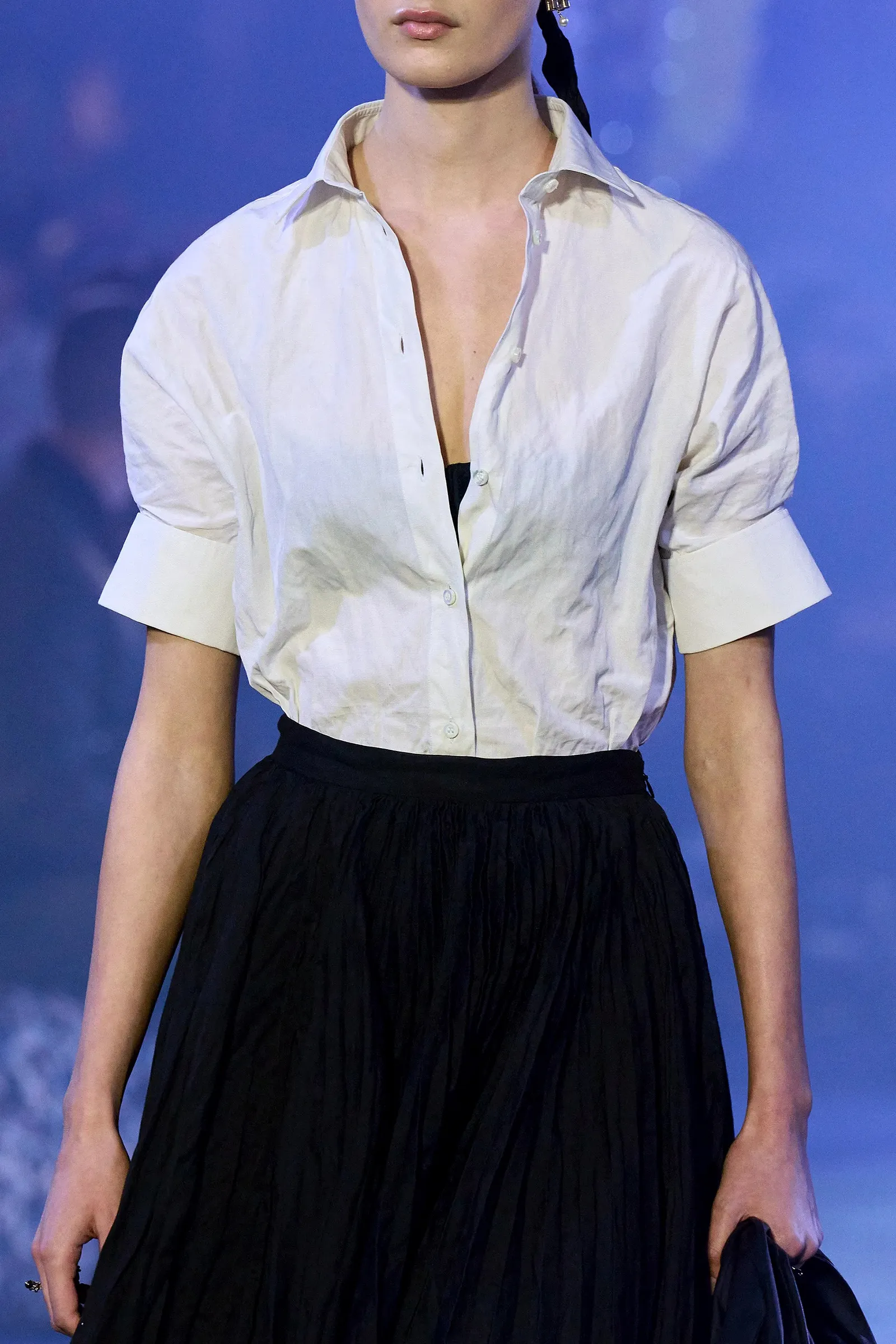 Para combinarlas, las faldas largas o midi tanto negras como estampadas, jeans, pantalones sastreros, son algunas de las tantas opciones. Además, según el outfit, podrán sumarse accesorios como corbatas (que tampoco están planchadas según Dior) o moños. A continuación, algunos ejemplos: