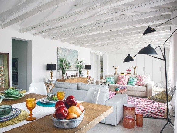 Para completar el estilo, podés decorar con lámparas de inspiración árabe, alfombras, almohadones coloridos, murales en las paredes y muebles originales patinados.