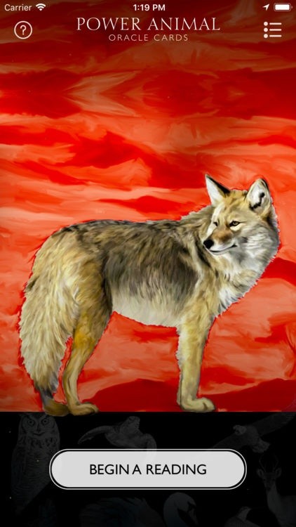 En el chamanismo, los animales son invocados para servir de guías e inspiración. Este oráculo compuesto por 48 cartas permite elegir una intención, cuya lectura (en inglés) es representada en 1, 3 ó 5 cartas. El resultado de las lecturas se puede guardar para referencias futuras y está habilitado para compartir en Facebook y Twitter.
